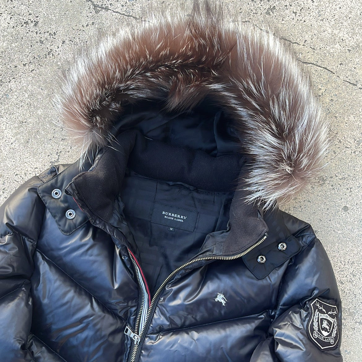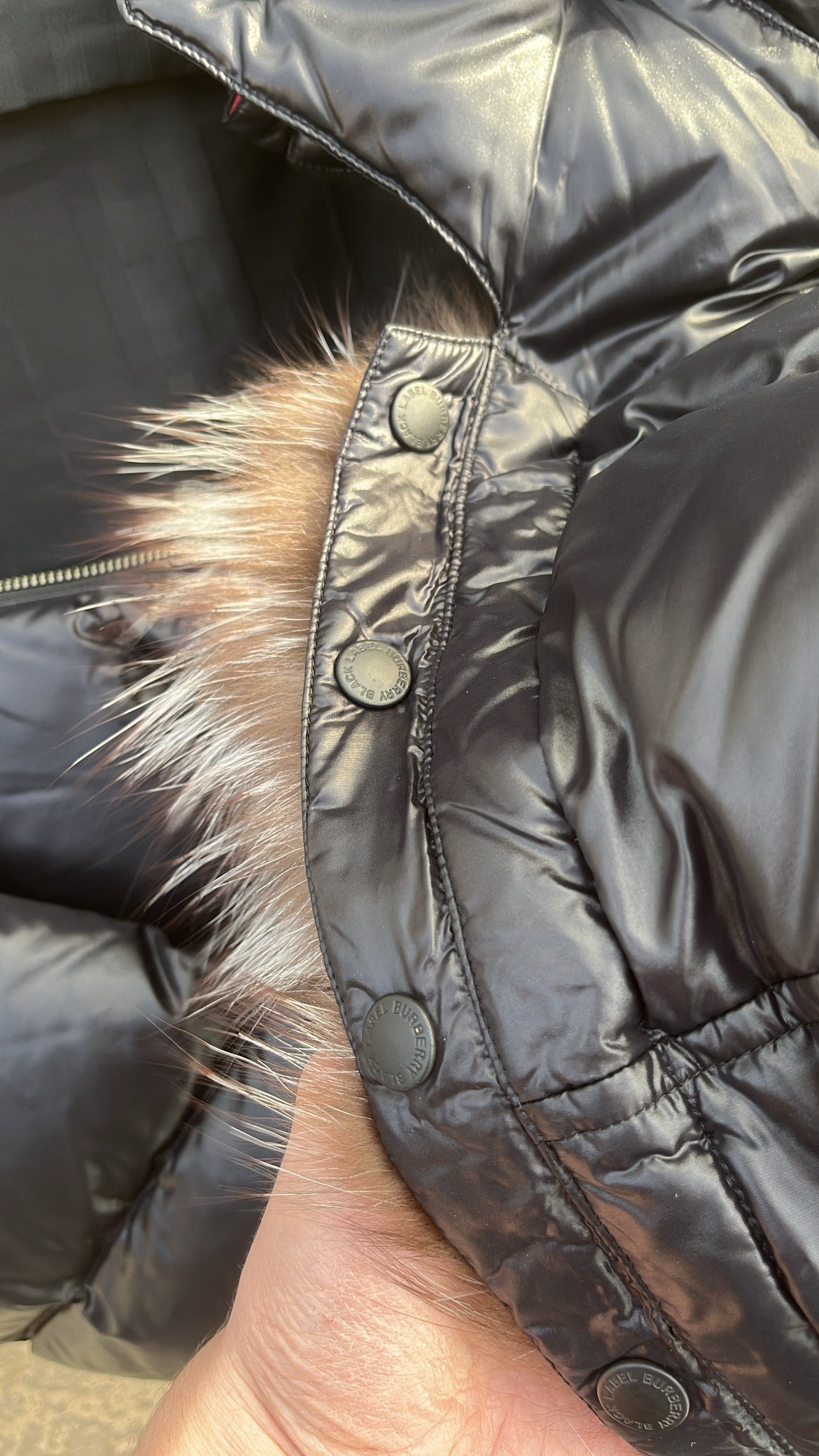 Burberry Black Label Jacket Glossy Black Real Fur