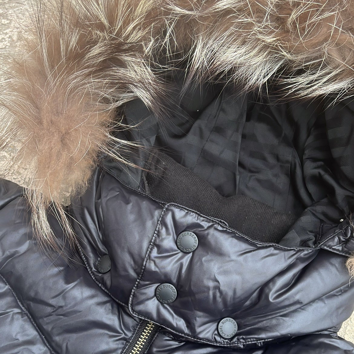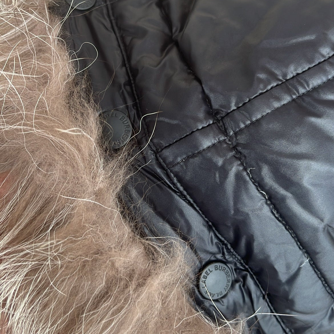 Burberry Black Label Jacket Glossy Black Real Fur