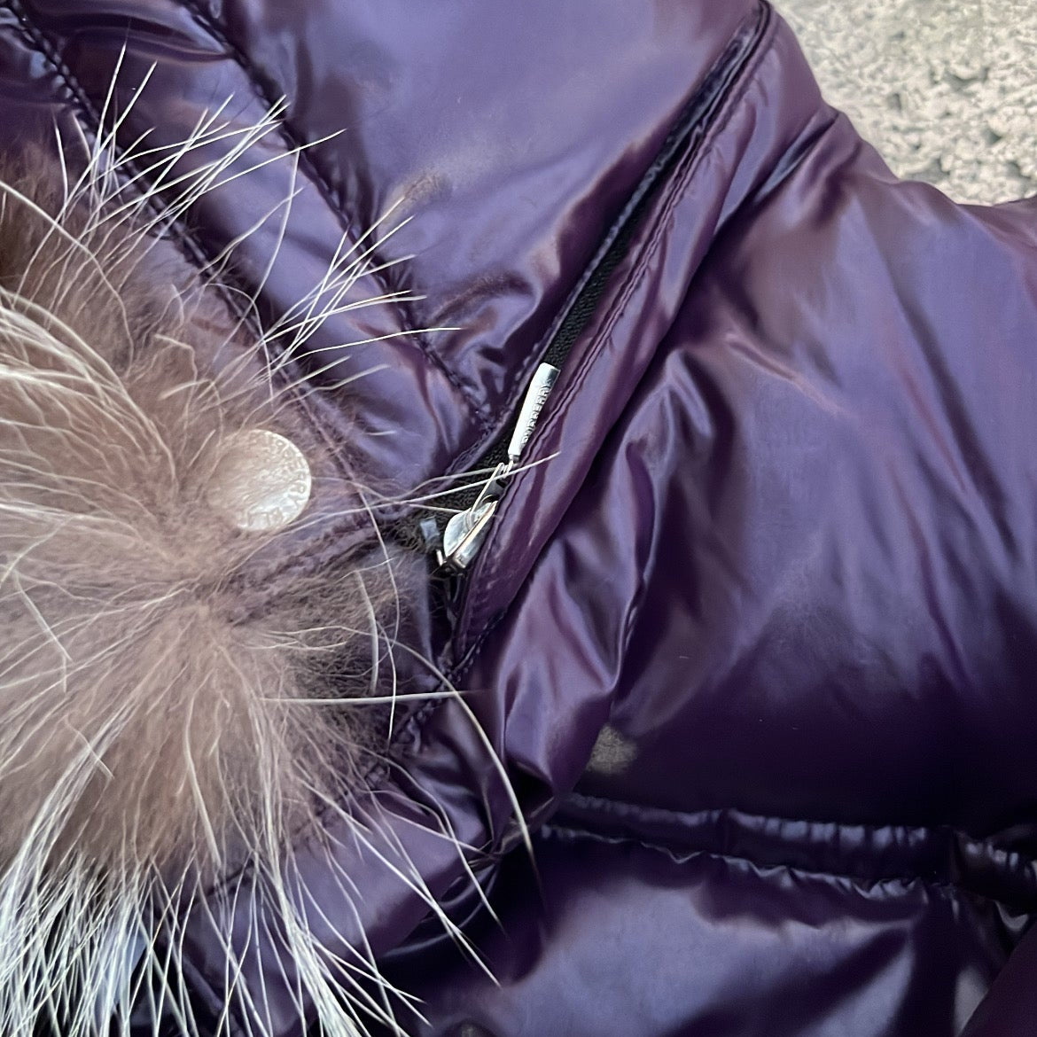 Burberry Black Label Glossy Purple Jacket - L - Real Silver Fox Fur